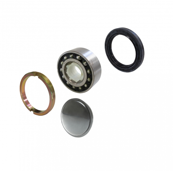 Questo kit di cuscinetto ruota posteriore include tutti i componenti consigliati per la sostituzione quando si installa un nuovo cuscinetto ruota. È adatto sia per la ruota posteriore destra che per quella sinistra del veicolo. È composto da un cuscinetto, un anello di tenuta filettato, un paraolio e un tappo.