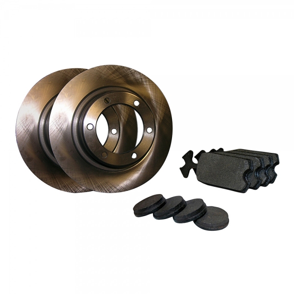 Questo set contiene: una coppia di dischi freno anteriori, quattro pastiglie freno a pedale e quattro pastiglie freno a mano.
