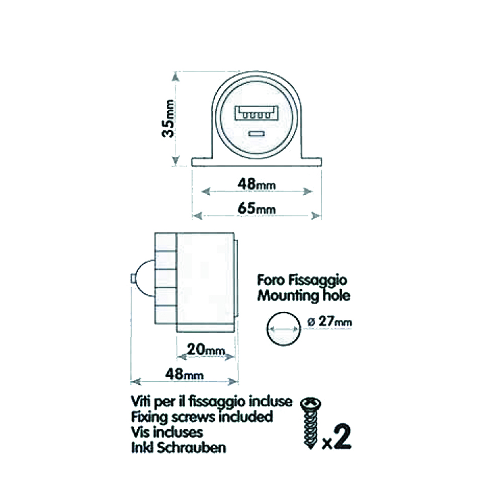 . Diametro di foratura per installazione ad incasso 27mm
