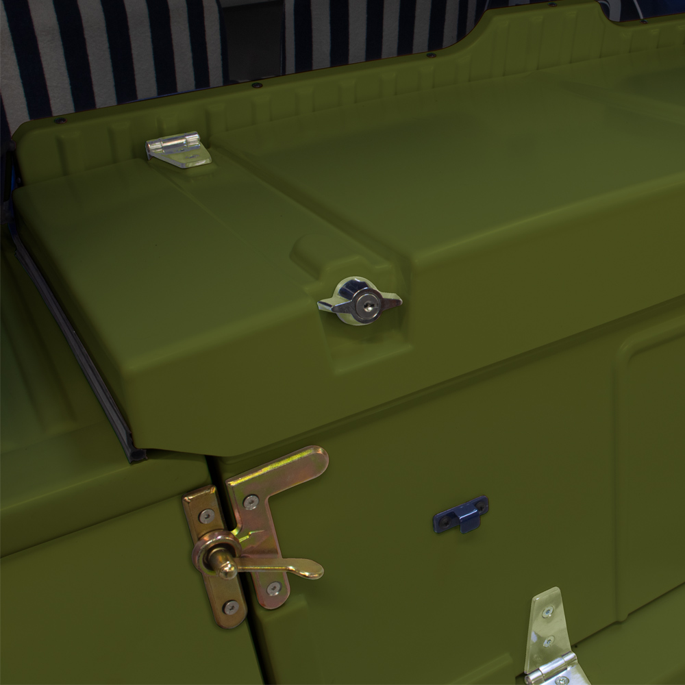 La copertura per bagagliaio Montana Green per Méhari permette di chiudere e mettere in sicurezza il bagagliaio di una Méhari, creando uno spazio bloccabile tra il sedile posteriore e il portellone, su veicoli con carrozzeria originale.