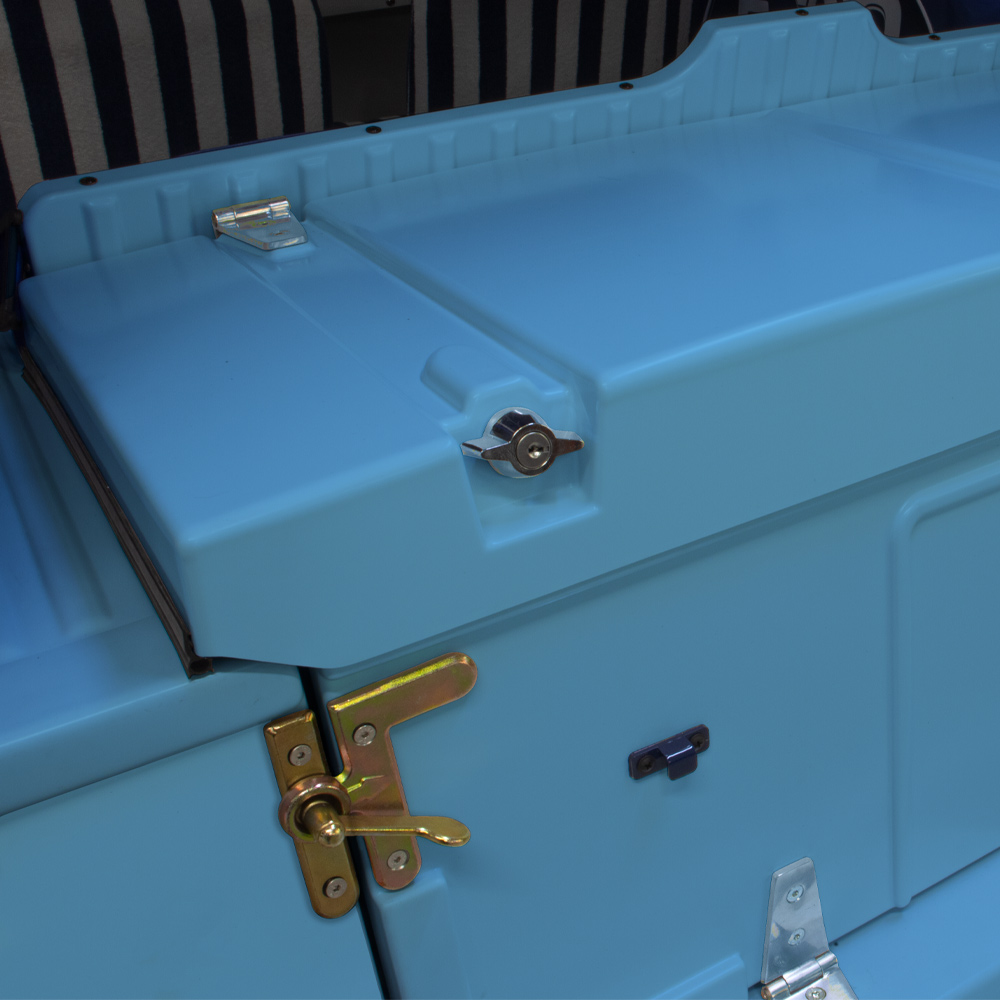 La copertura per bagagliaio in PMMA blu per Méhari ti permette di chiudere e mettere in sicurezza il bagagliaio della tua Méhari, creando uno spazio bloccabile tra il sedile posteriore e il portellone.