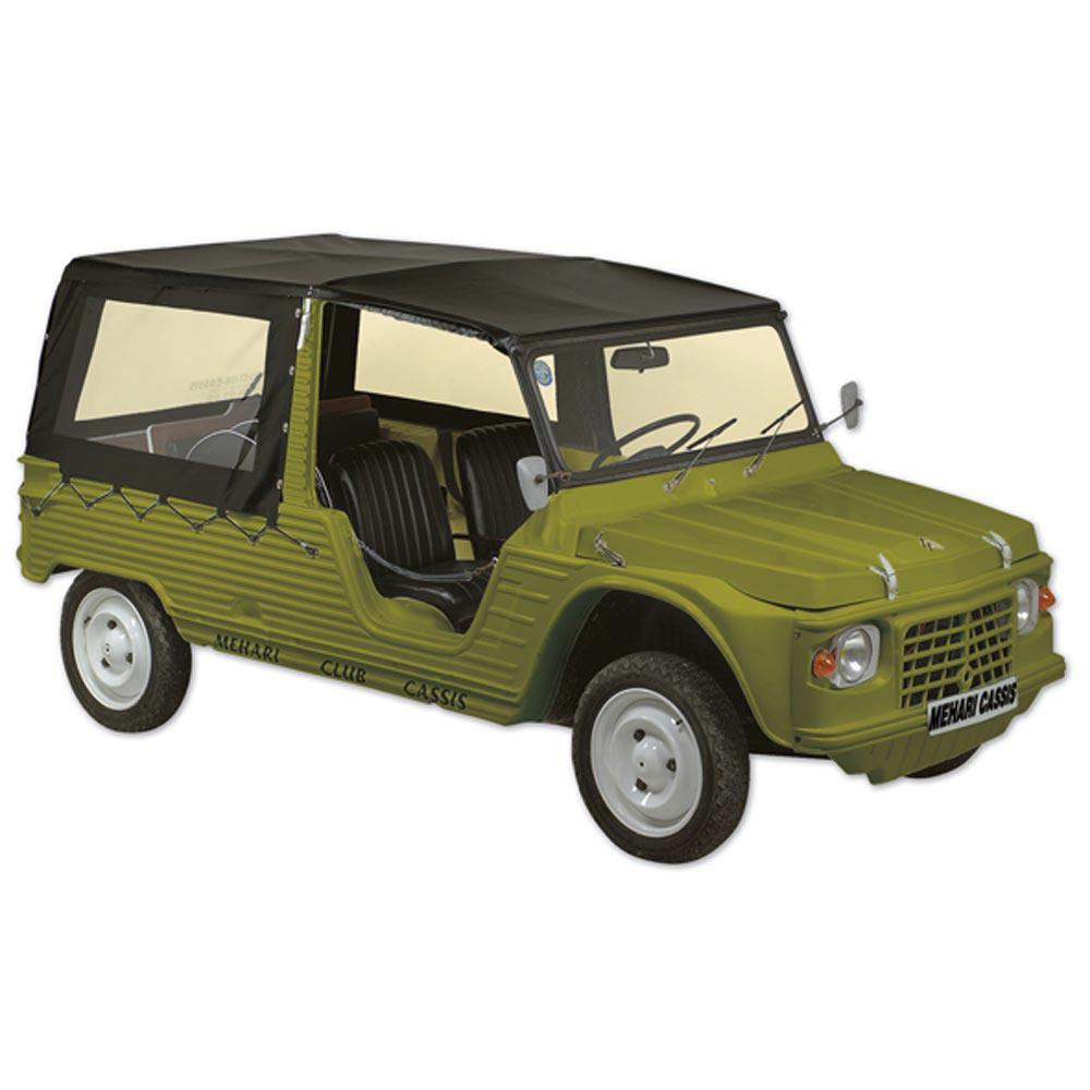 Questo set completo di capote nere originali è progettato per le Méhari dotate di parabrezza in metallo di vecchio tipo (fino a luglio 1971).