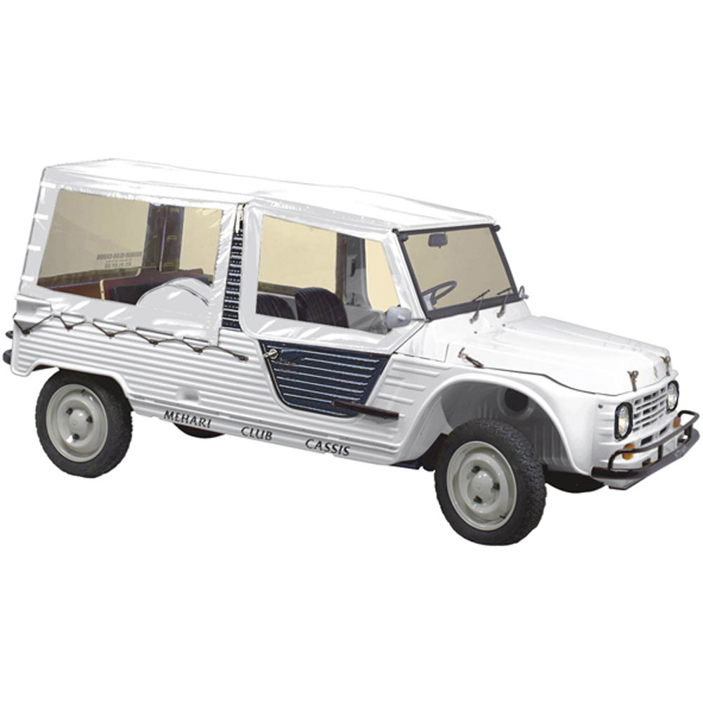 NOTA BENE: Questo set di coperture è progettato esclusivamente per i modelli Méhari con parabrezza in alluminio, bordo esterno sulla parte superiore del telaio e angoli retti.