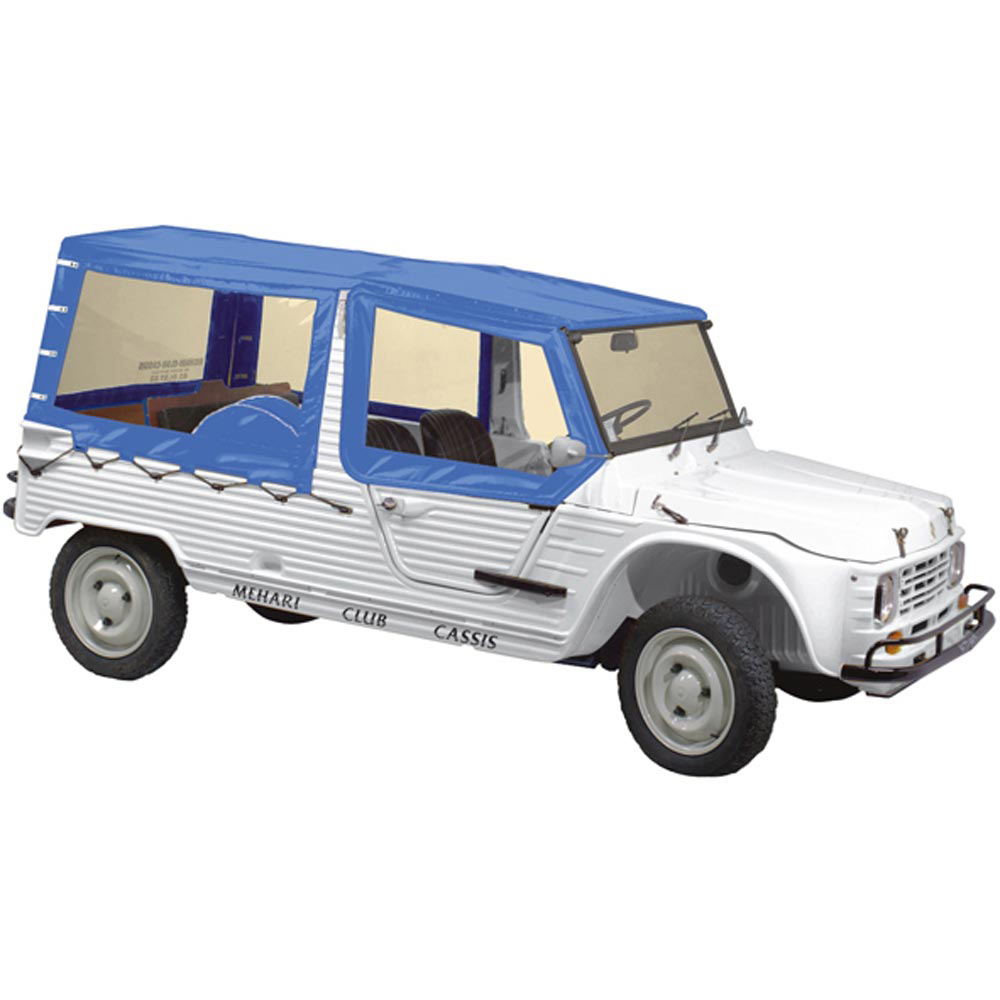 Questo set di capote è progettato per i modelli Méhari dotati di parabrezza in alluminio (con angoli rettangolari). Si monta utilizzando le staffe per capote, codice articolo 07005000. Esclusivo per la 2CV Méhari Club Cassis, questo set di capote originale è interamente realizzato a mano nel rigoroso rispetto delle specifiche storiche Citroën.