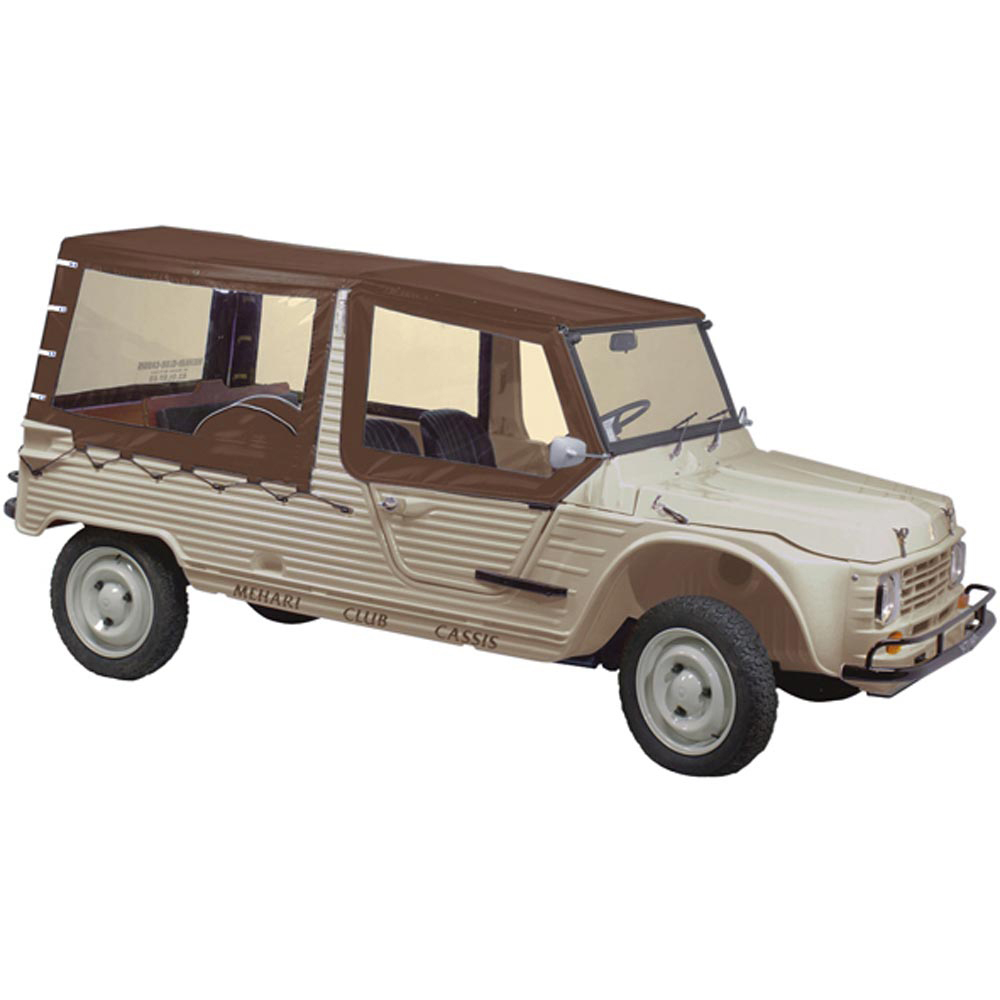Questo set di capote è progettato per i modelli Méhari dotati di parabrezza in alluminio (con angoli rettangolari). Si monta utilizzando le staffe per capote, codice articolo 07005000. Esclusivo per la 2CV Méhari Club Cassis, questo set di capote originale è interamente realizzato a mano nel rigoroso rispetto delle specifiche storiche Citroën.