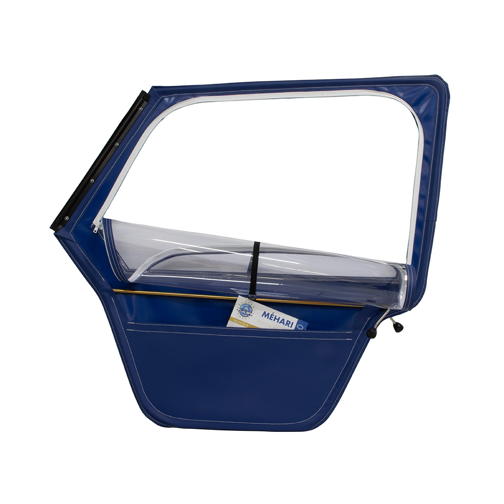 Porta destra parabrezza in alluminio con apertura completa + tasca blu fa parte del nostro catalogo di Ricambi per Citroen MEHARI ed è compatibile con la tua auto d'epoca: parola dei nostri tecnici.