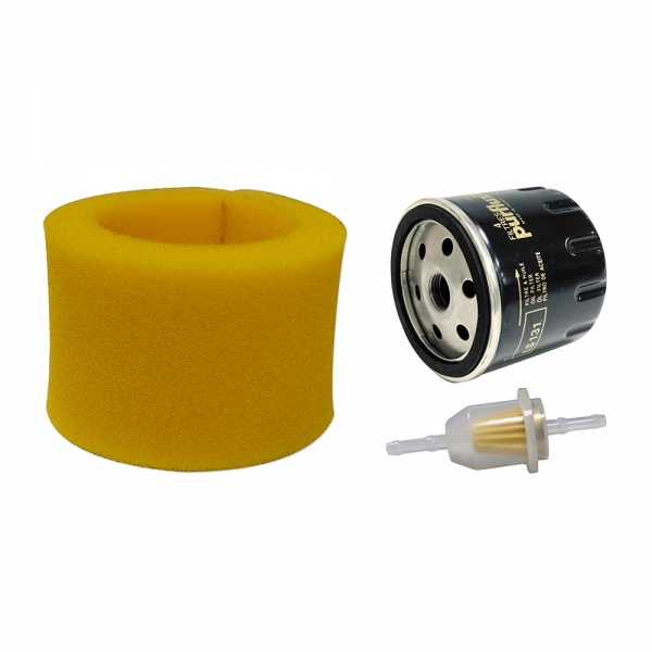 Questo Kit contiene: un filtro dell'olio originale, un filtro del carburante e una cartuccia del filtro dell'aria in schiuma nuovo modello.