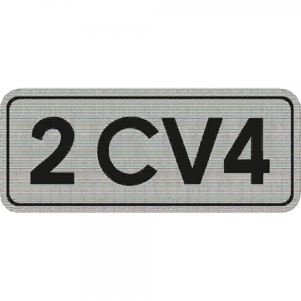 Monogramma "2CV 4" realizzato in materiale adesivo di alta qualità e conforme al font originale. Questo adesivo si posiziona sul lato inferiore destro del portellone posteriore della tua 2CV 4 per mantenere le specifiche estetiche della tua 2CV con motore da 435 cc.